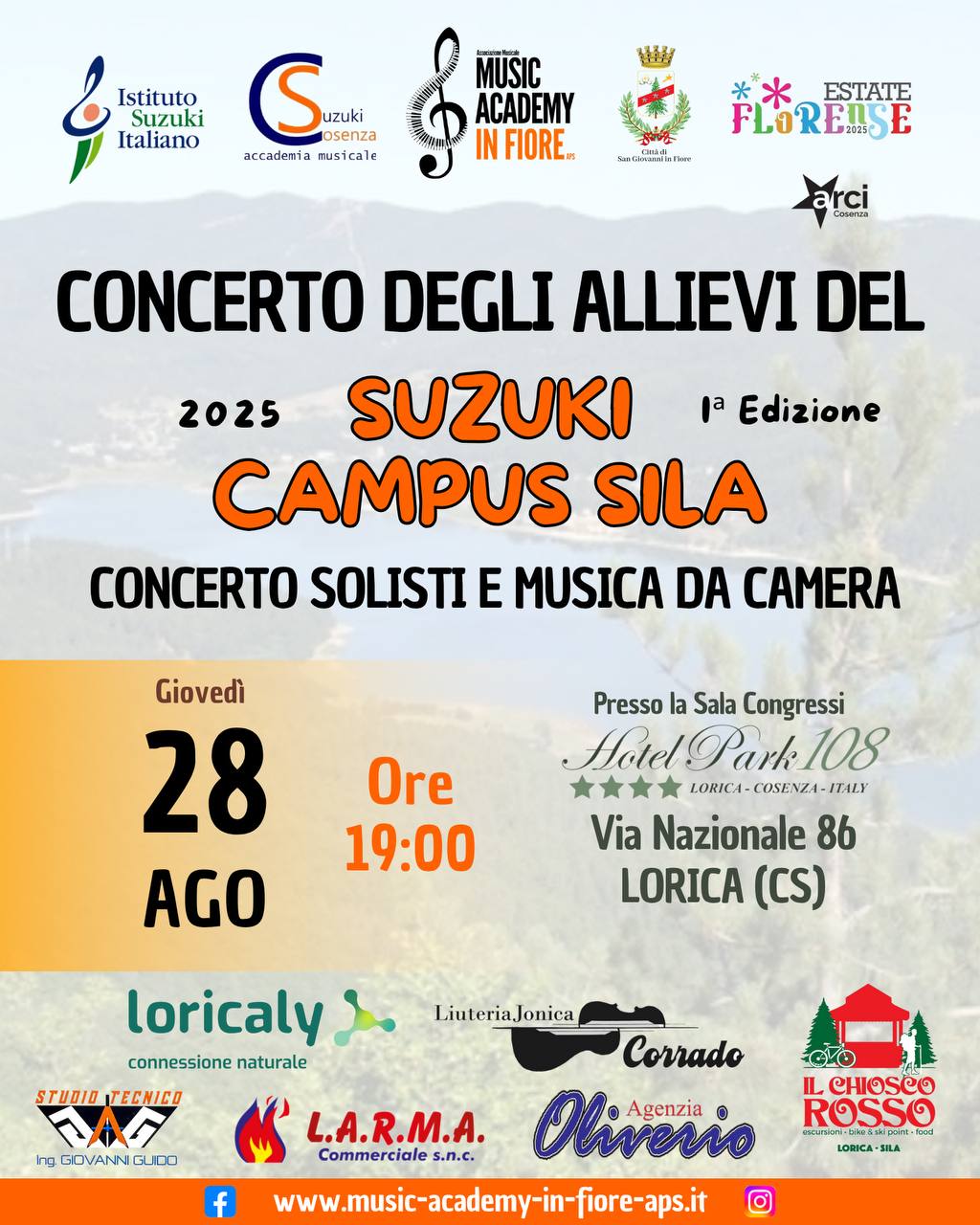 • Giovedi 28 agosto - ore 19.00 Lorica - giardino hotel Park 108 ~ Concerto degli allievi del Suzuki Campus Sila